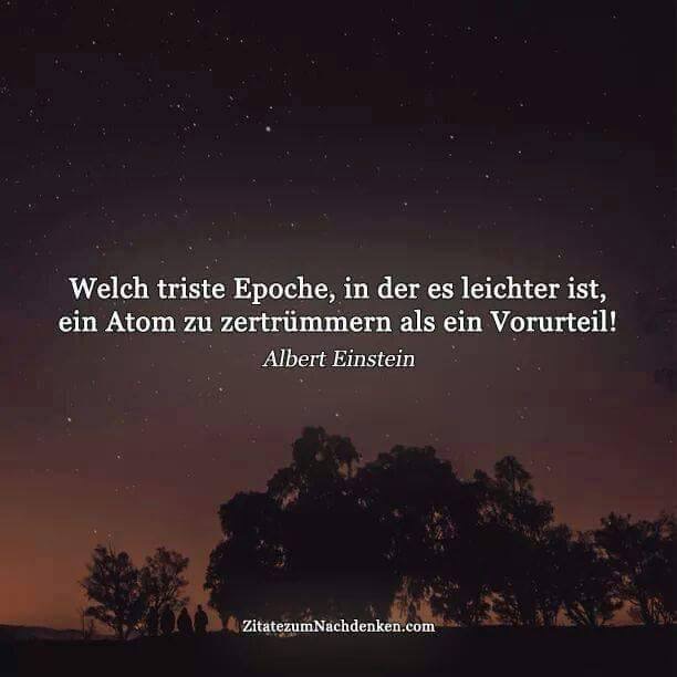 Welch triste Epoche, in der es leichter ist, ein Atom zu zertrümmern als ein Voruteil! – Albert Einstein –