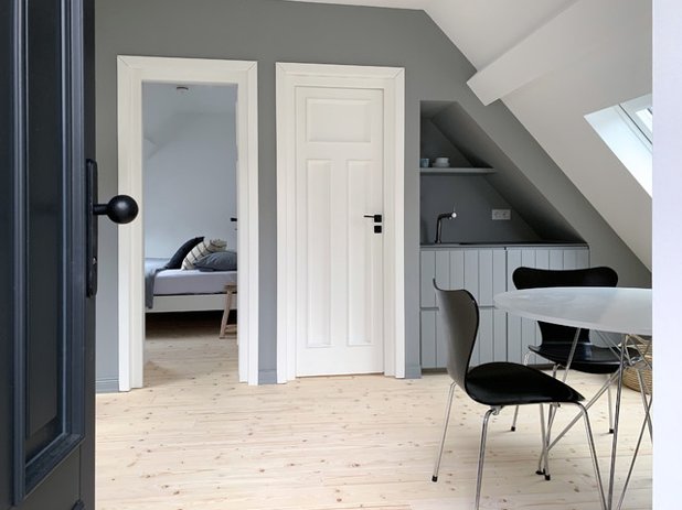 Voll ausgestattet und richtig behaglich: In dieser alten Fachwerkscheune wurde aus dem Dachgeschoss mit viel Liebe zum Detail und raumerweiternden Tricks ein behagliches Apartment geschaffen, das viel größer als seine 42 Quadratmeter wirkt…